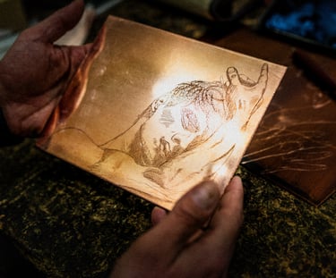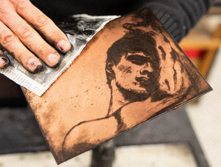 La gravure à l’eau‑forte est un travail de patience et de lumière. Chaque étape transforme la plaque, mais transforme aussi le regard. Cette rubrique en suit le fil, image après image, comme on suivrait la naissance d’une empreinte.